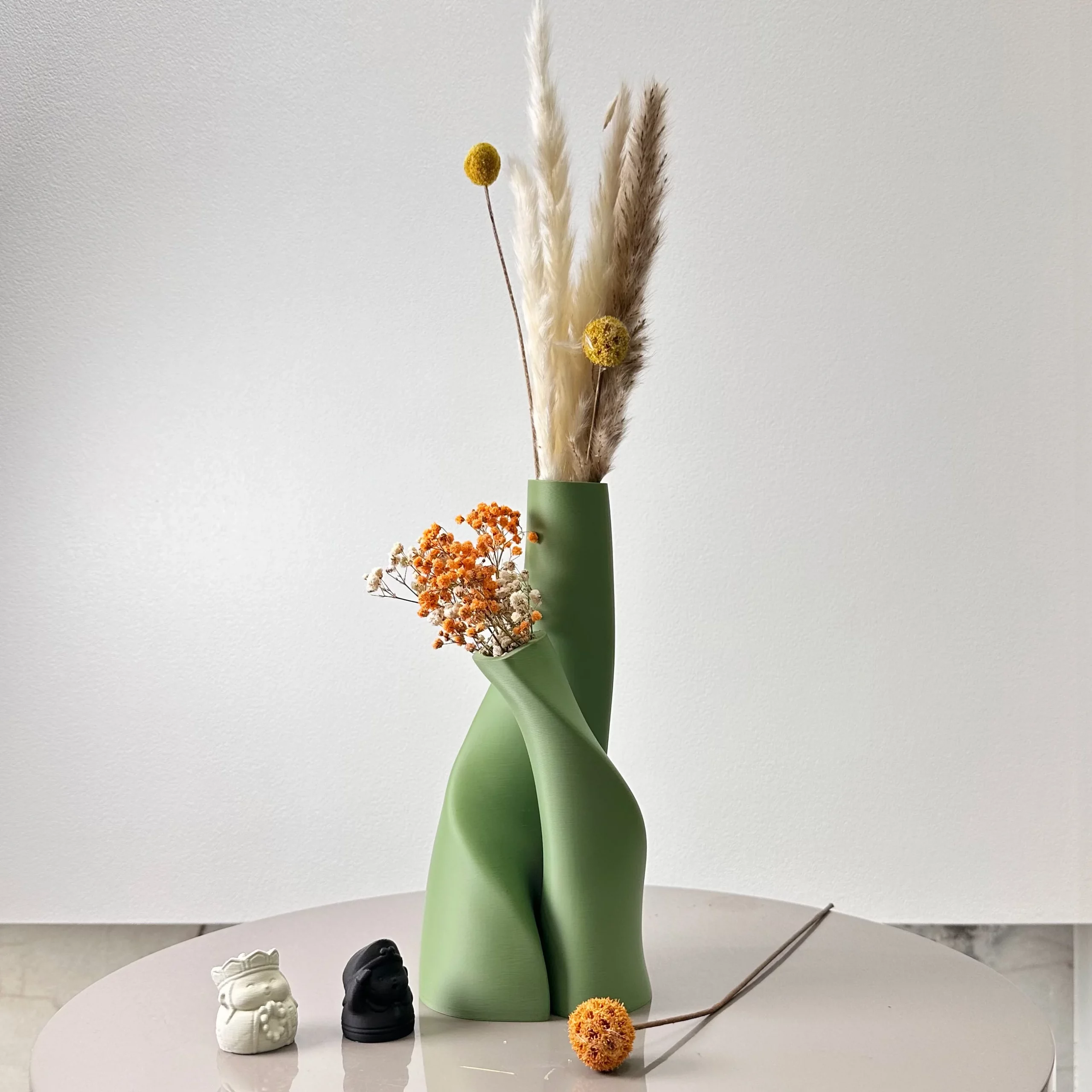 Collection capsule de deux vases-sculptures au design architectural en V. Un dialogue entre le grand format (24,5 cm), à la verticale affirmée, et le petit (17,3 cm), à l’équilibre plus intime. Leurs lignes épurées, réalisées dans un matériau composite au fini luxueux, transforment une simple tige séchée en installation artistique. Une pièce signature pour les intérieurs d’exception.